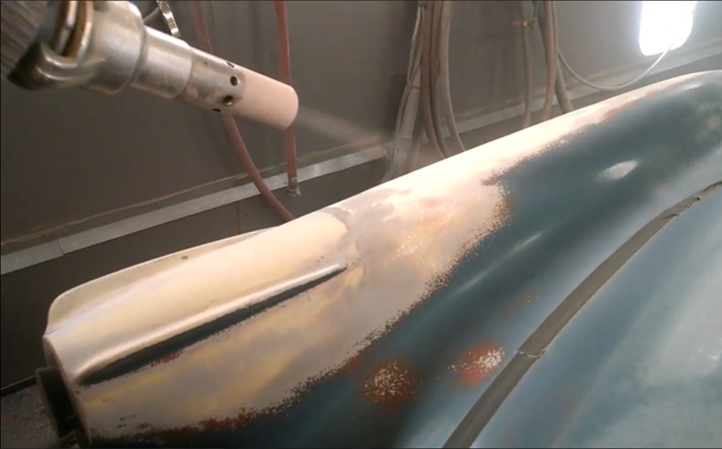 Roger: Plastic Media, when compared to other abrasive medias, is the most effective remover of paint or powder coatings from any substrate. We’ve tried other media types, but none of them are as effective as plastic media at removing coatings. Plastic media blasting is our first step in removing paint from any car. At American Dry Stripping, the first step in the coating removal process for cars or other hard surface substrates is in the plastic media blasting booth.