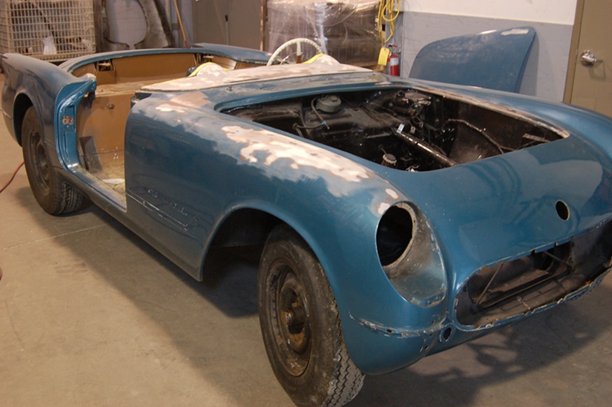 Roger: We never strip paint from the fiberglass body of a Corvette with anything other than plastic media. We remove the paint but make sure we preserve the gel coat. We would never be able to use another media except plastic to do that because it would go right through the Corvette gel coat, right through the fiberglass.